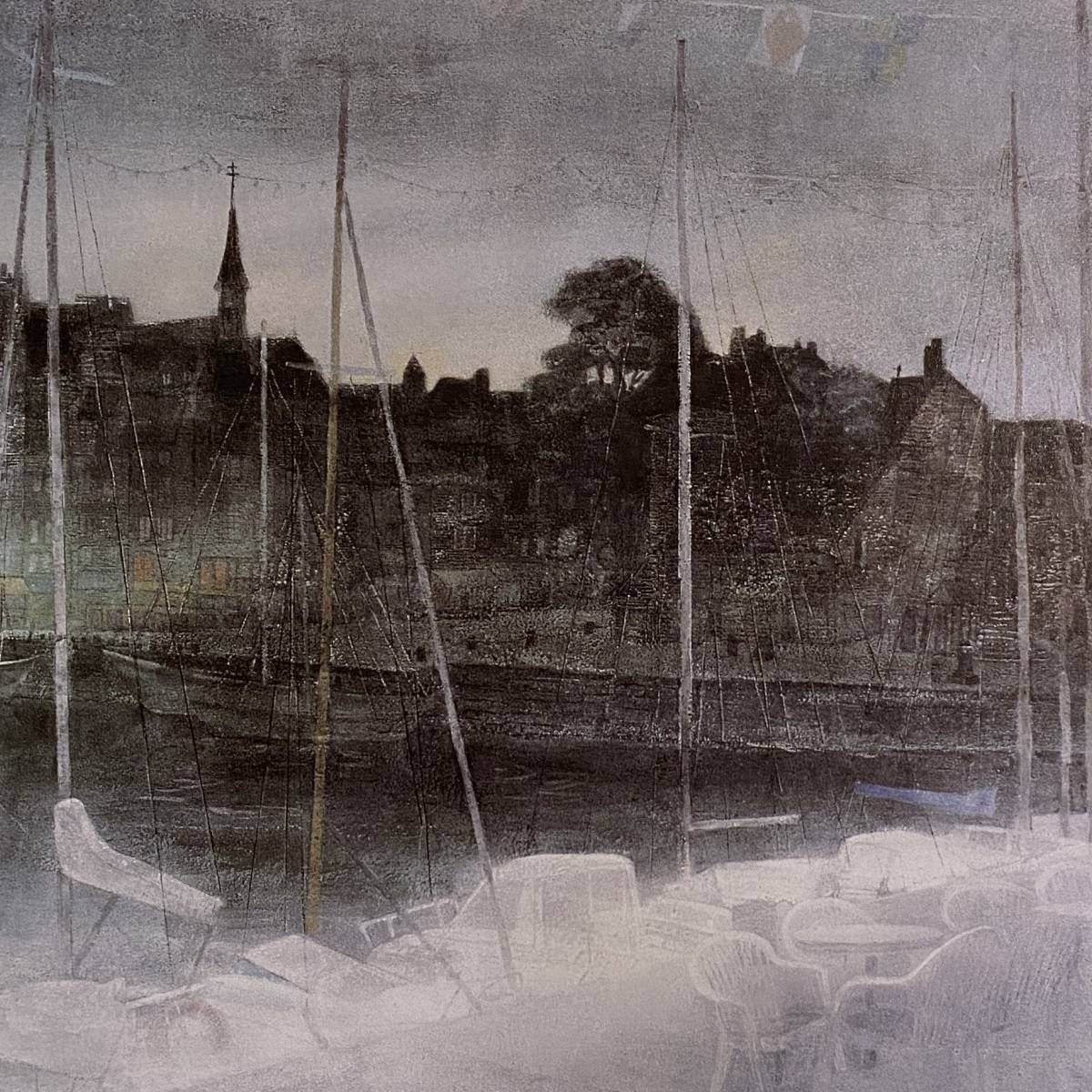 - 豊田美枝子、〈明けゆく港町(オンフルール)〉、希少画集画、高級新品額・額装付、状態良好、送料無料