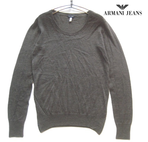 - 美品チュニジア製!!アルマーニジーンズ ARMANI JEANS*Uネック アルパカウールニットセーター 44 実寸S ダークブラウン ジョルジオ