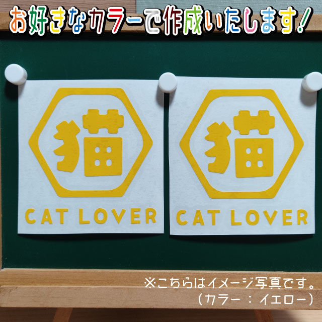 - 漢字ロゴ六角形①猫ステッカー2枚組 文字絵柄だけ残るカッティングステッカー・愛猫家・CAT・ネコ・にゃんこ・車・窓・ガラス