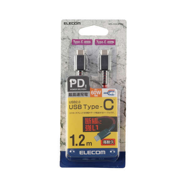 - USB2.0ケーブル [C-C] 1.2m USB Power Delivery(最大60W)対応 3種類の新設計を採用した高耐久タイプ: MPA-CCS12PNRD