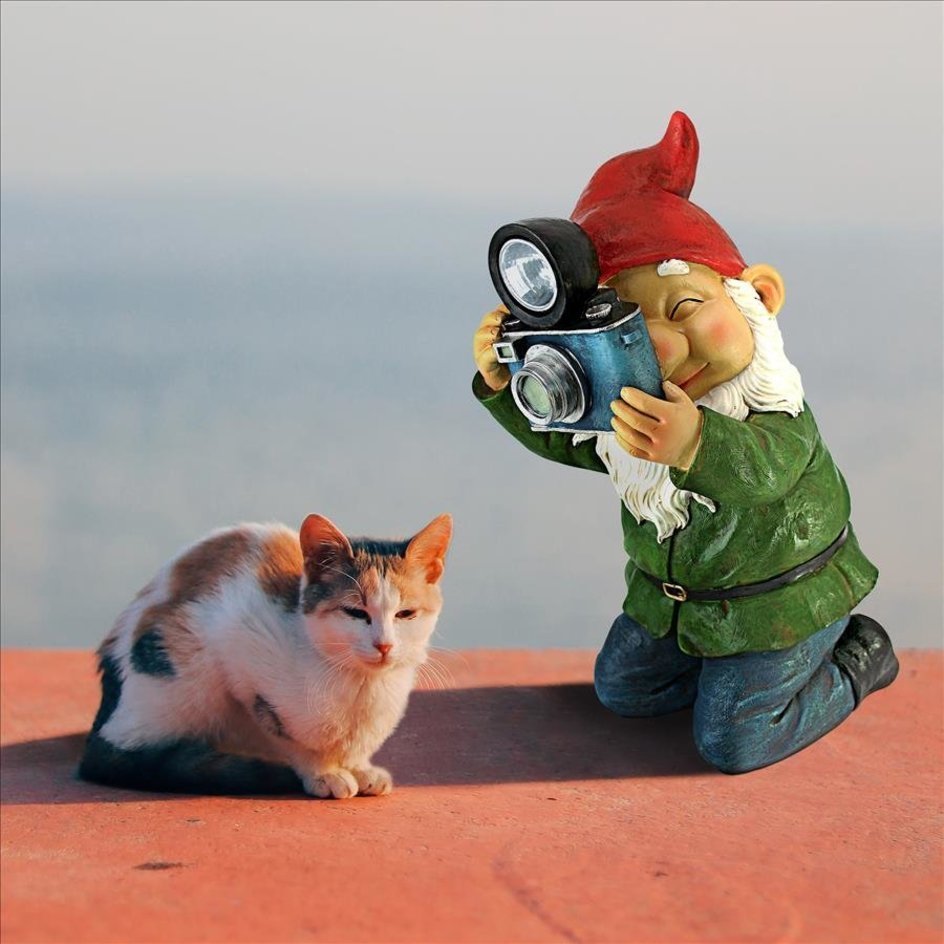 - スマイルフォーミーソーラーガーデンノーム彫像カメラをかまえる小人屋外アウトドア花壇彫刻オブジェフィギュア贈り物輸入品