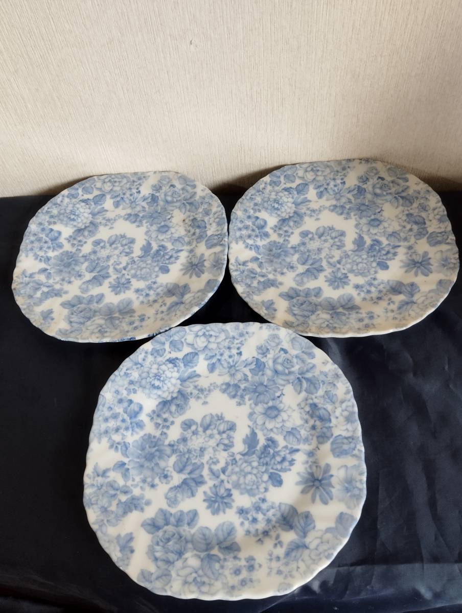 - 美窯 花文 プレート 皿 3枚 セット 美品 ・花柄・ブルーフラワー 昭和レトロ/当時物