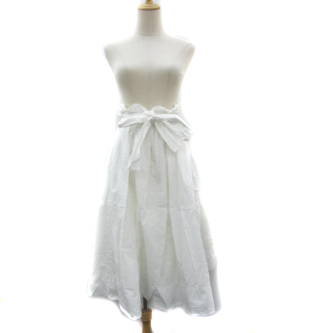 > ワンアフター アナザー ナイスクラップ フレアスカート ギャザースカート マキシ丈 ロング丈 無地 リボンベルト付き F 白 レディース