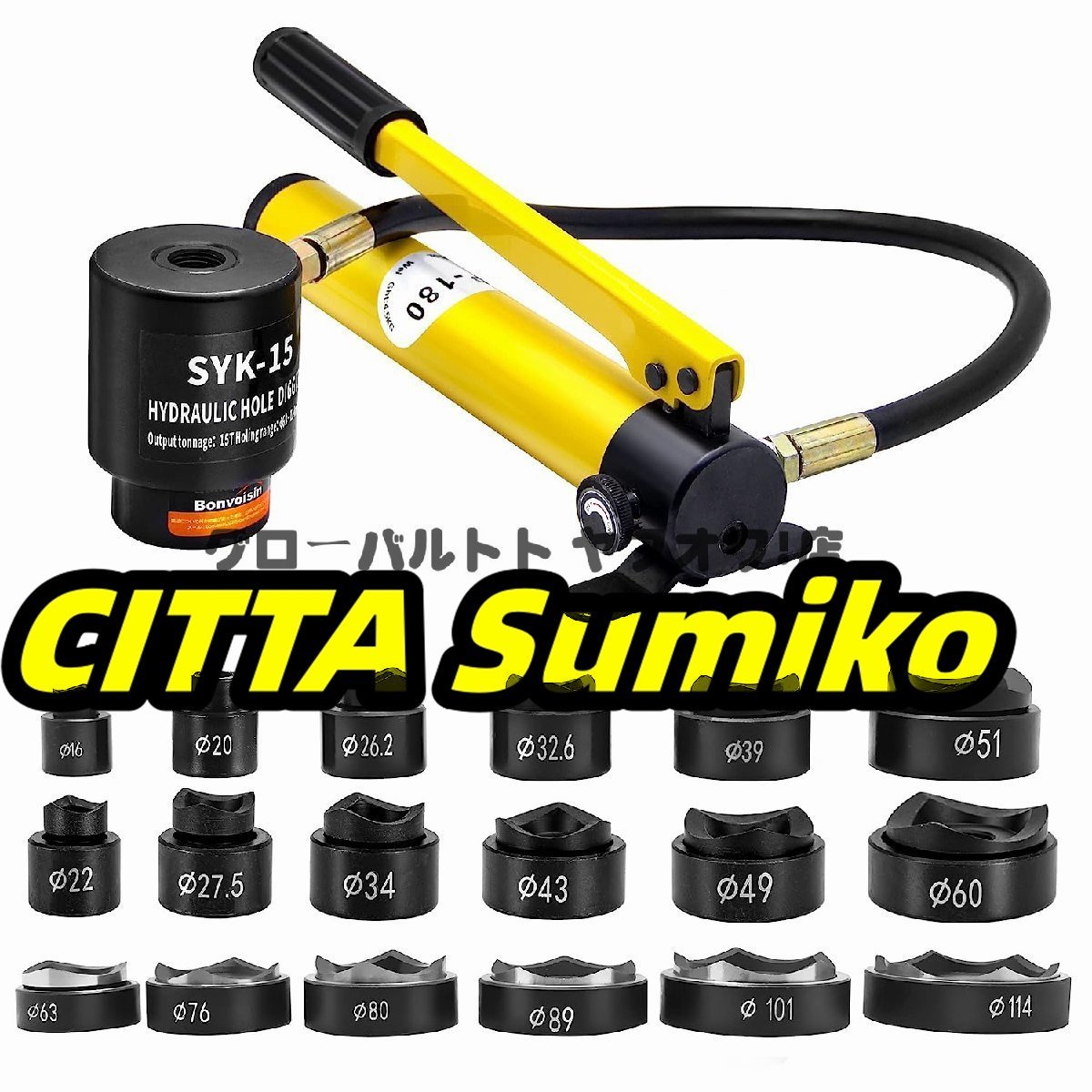 - 実用★ 油圧パンチャー 手動穴あけパンチ 15トン (SYK-15(18種類金型)) ステンレス鋼 鉄板 工事 建築 工業 金型付き S909