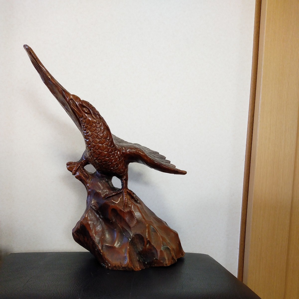 - 一刀彫り 鷲わし 高さ47㎝幅37㎝奥さ28㎝ 少し傷あり