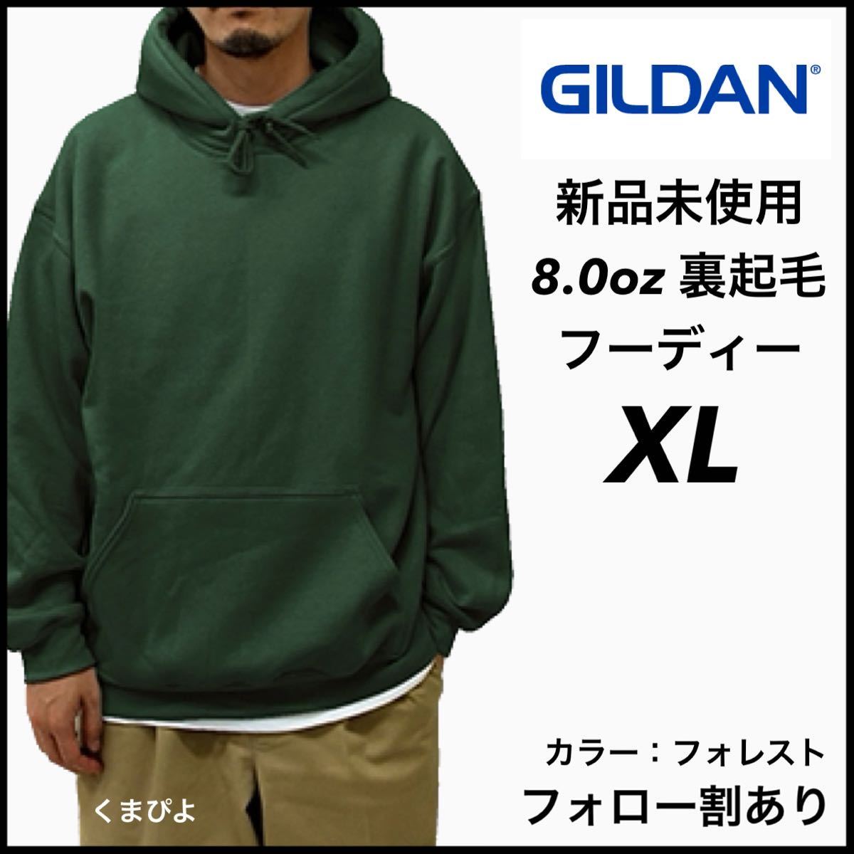 - 新品未使用 ギルダン 8oz プルオーバーフーディー 裏起毛 パーカー GILDAN フォレスト XL