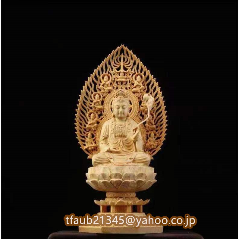 - 【ケーリーフショップ】高品質 総檜材 仏教工芸品 木彫 精密彫刻 仏師で仕上げ品 大勢至菩薩像 檜木 高約28cm