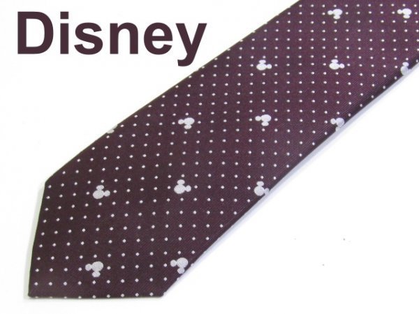 - 【ディズニー ミッキー】C 799 ディズニー ネクタイ Disney BRICK HOUSE 茶系 ドット柄ジャガード ミッキー小紋柄 ナロータイ