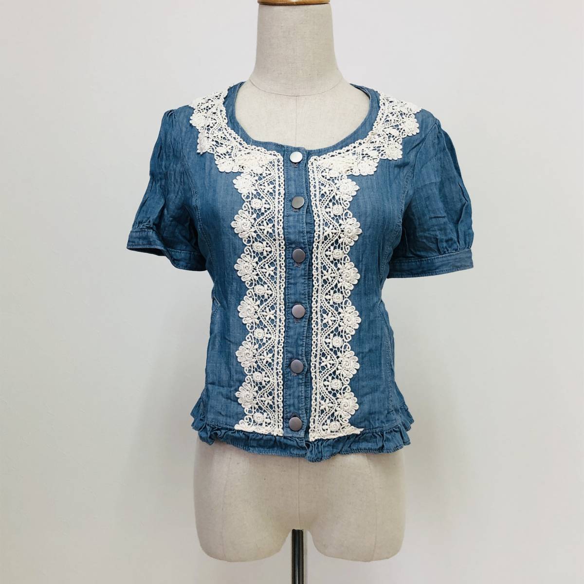 - k2960 美品 L'EST ROSE レストローズ ブラウス トップス デニム 半袖 薄手 綿混 ポケット サイズ2 レディース キュートなスイートスタイル