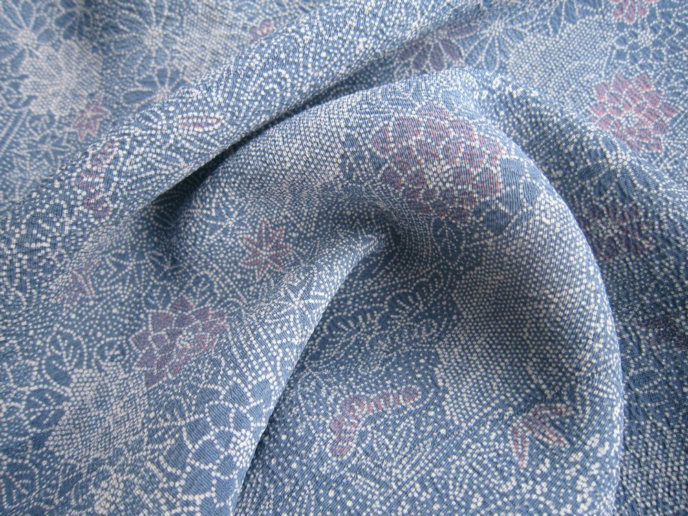 - ■☆紅手細工 アンティーク 深めの勿忘草色・江戸小紋柄 古~い正絹縮緬 帯揚げのみ
