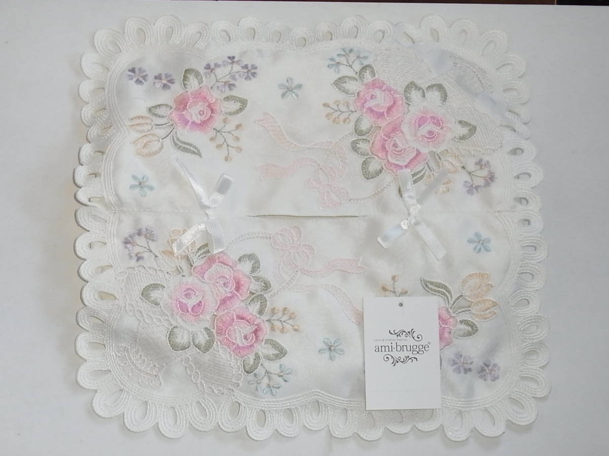 - ◎ ami-brugge アミブルージュ ティッシュボックスカバー サイズ:約12 X 26 X 11cm クレイブ 花模様 刺繍 紙タグ付き ◎
