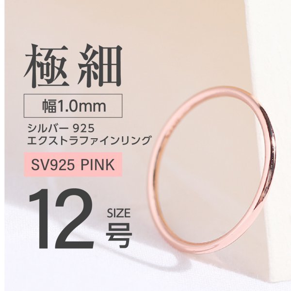 - J011-3 シルバー リング エクストラファイン S925 ピンクカラー 12号