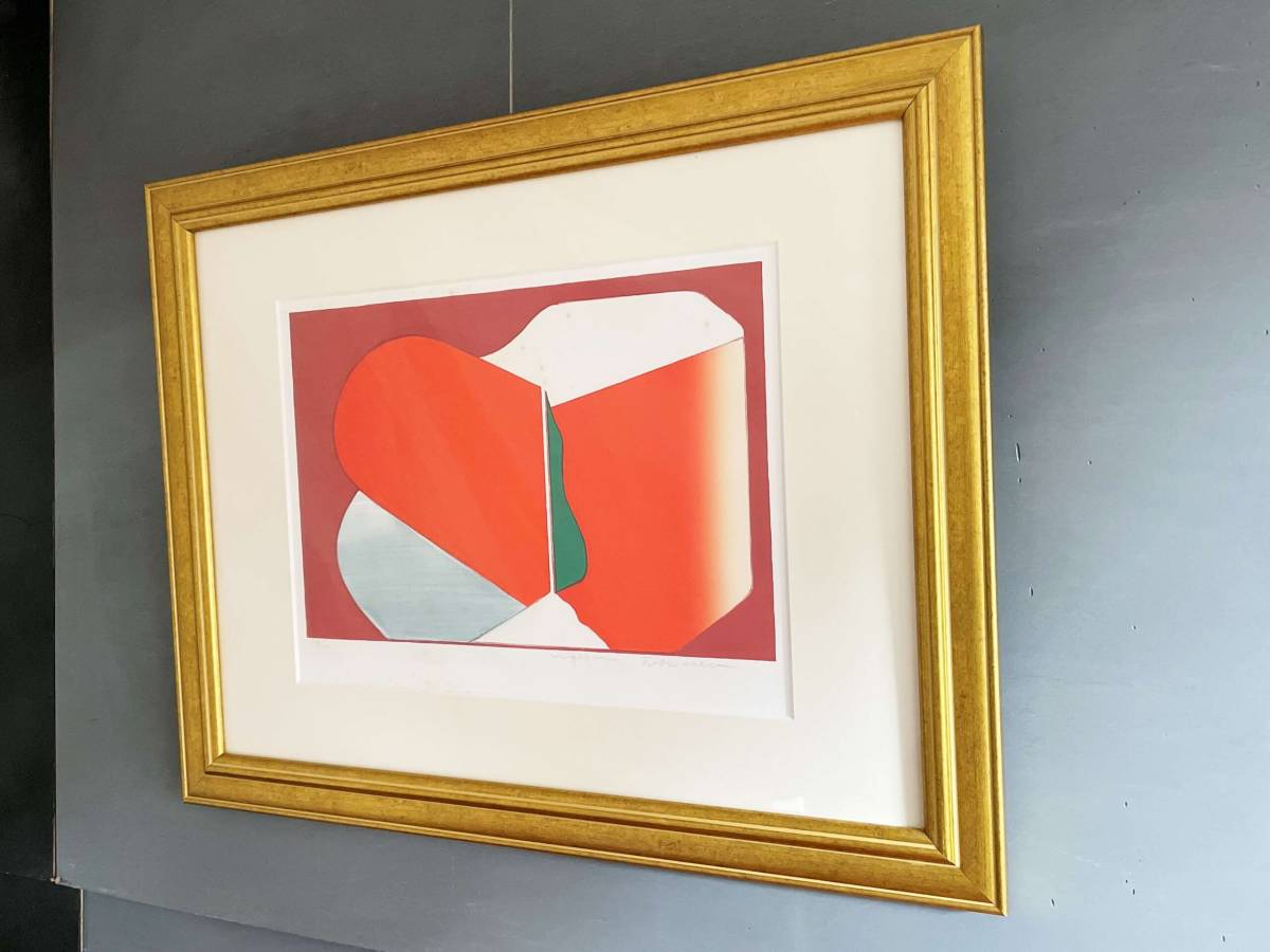 > [9334]床枝 清 57.5cm 額付 リトグラフ シリアルナンバー サイン有 アート 版画 シルクスクリーン 検)猪熊 弦一郎 南 正雄