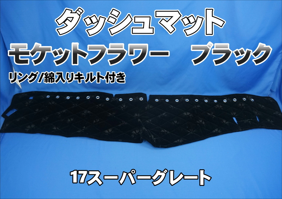 - 17スーパーグレート用 モケットフラワー コスモス ダッシュマット リング/綿入りキルト付き ブラック/フレンジ無し