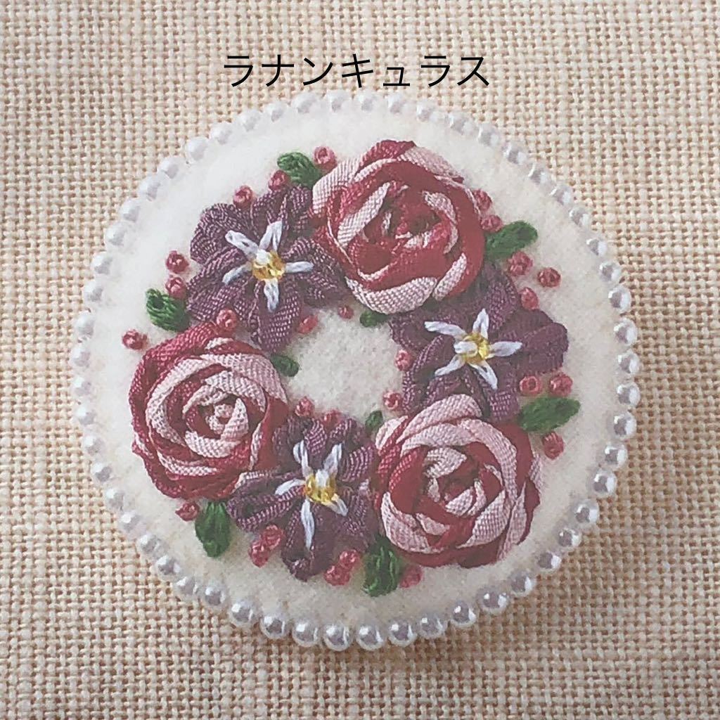 - 新品キット【ラナンキュラス】お花で彩る上品なリボン刺しゅうブローチコレクション 手芸キット ハンドメイド 刺しゅう サンフェルト 刺繍
