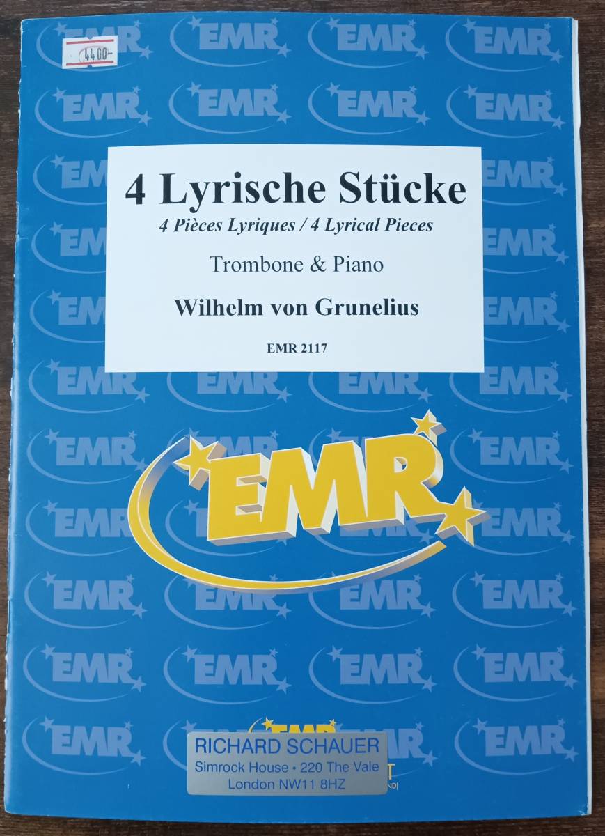 - 送料無料 トロンボーン楽譜 ヴィルヘルム・フォン・グルネリウス:4つの抒情的小品 試聴可 トロンボーン&ピアノ