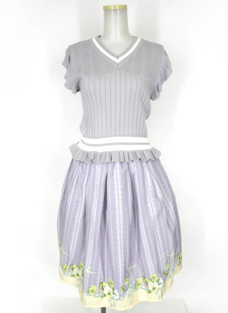 - axes femme POETIQUE フリルニットベスト & パンジープリントスカート セット / アクシーズファム ポエティック [B59253]