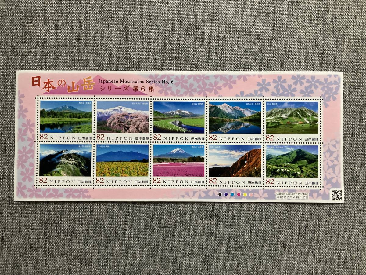 > ★未使用 日本の山岳シリーズ 第6集 利尻山 安達太良山 至仏山 白馬三山 立山 槍ヶ岳 八ヶ岳 富士山 北岳 宮之浦岳 2015年 切手シート 82円