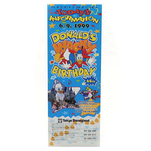 - ディズニー TDL TODAY'S INFORMATION 1999年6月9日 東京ディズニーランド ドナルド65歳バースデー