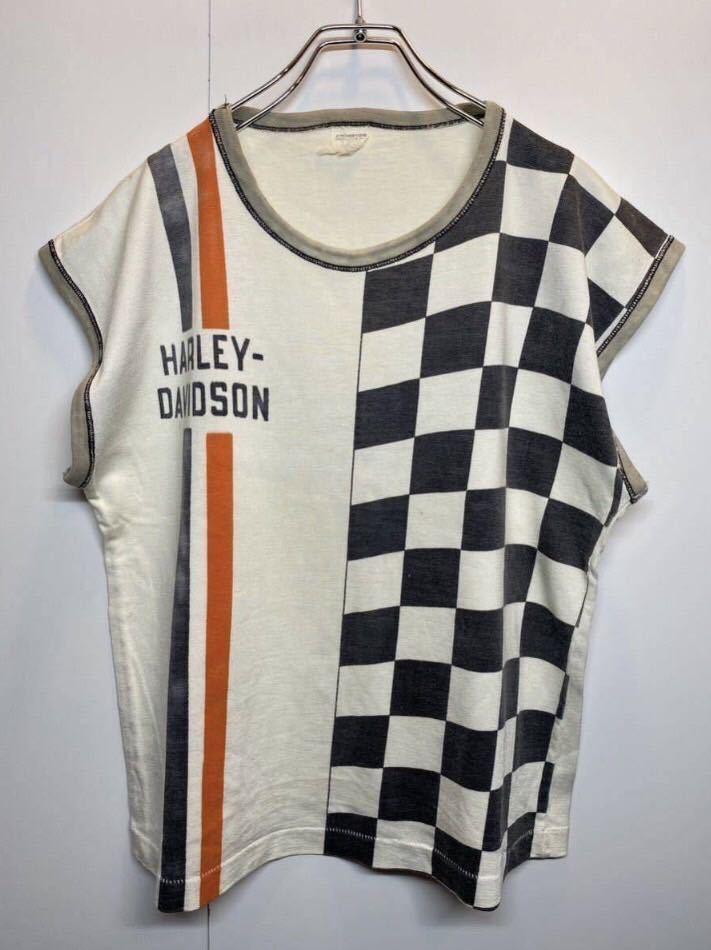 > 60s Champion Harley Davidson Motorcycle Racing Jersey Top チャンピオン ハーレーダビッドソン ノースリーブ シャツ 白 チェックT40