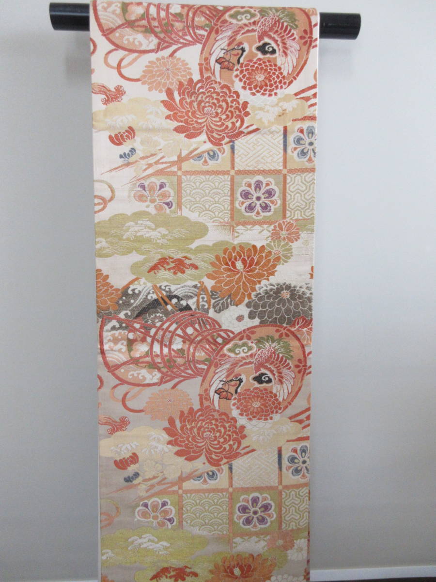 - ☆箪笥の整理 正絹 袋帯 鼓に鶴・菊柄 ★