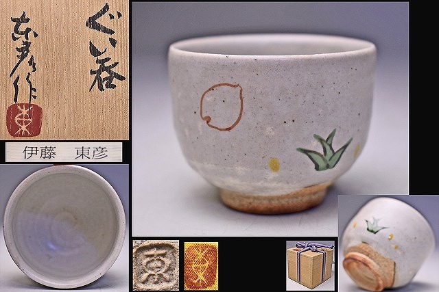 > 伊藤東彦 ★ ぐい呑 ★ 共箱共布栞 ★ 東京の陶芸ギャラリー 寛土里 の栞あり ★ 笠間焼 のベテラン ★ ito motohiko