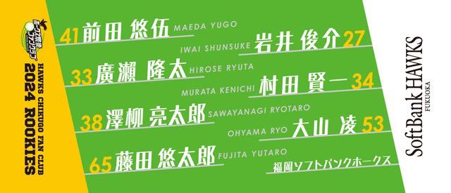 - 2024 ソフトバンクホークス 筑後ファンクラブ フェイスタオル&うちわ&ステッカー2枚 計4点セット