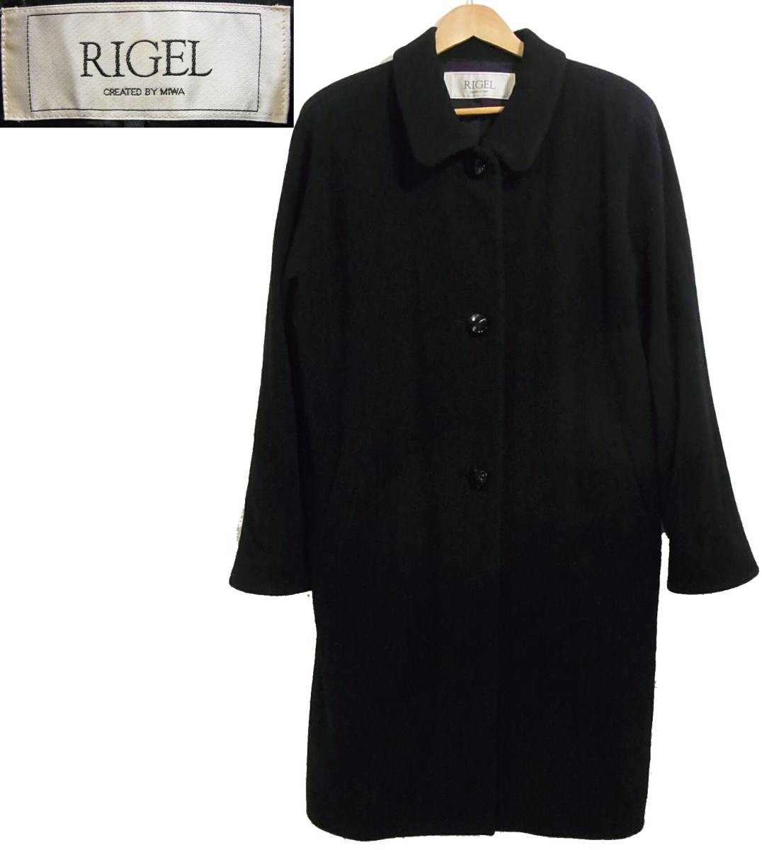 - 送料無料 美品 RIGELウール ロングコート黒レディース フリー(XL相当)ビッグサイズ シングル日本製CREATED BY MIWAブラック リゲル