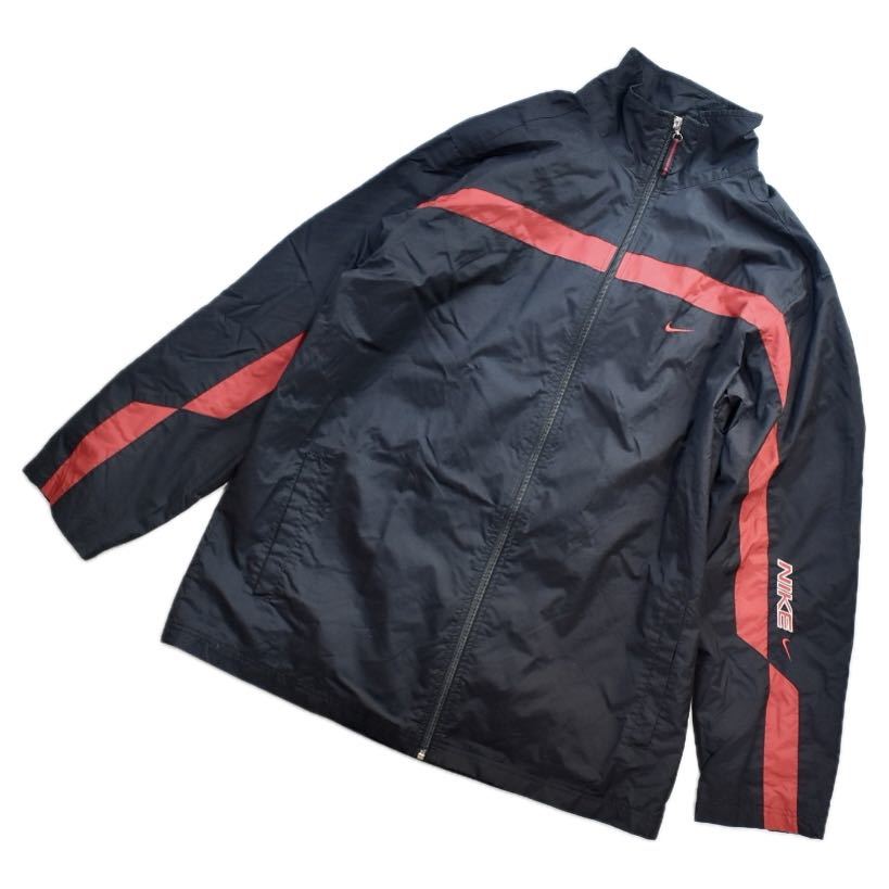 - 00s NIKE Y2K 黒赤 ナイロンジャケット 刺繍ロゴ L オーバーサイズ