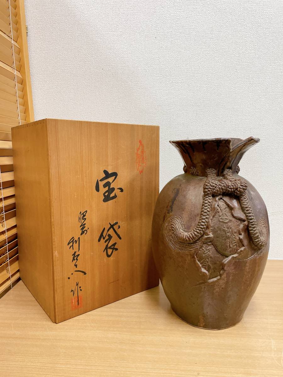 - お値下げします★珍品【肥前焼 宝袋 壺 銘あり】インテリア /コレクション /古肥前 /骨董 /花器 /巾着花入 /水瓶 /瓶 /A62-087