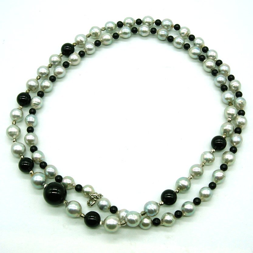 - PL263:SV 調色あこや真珠(6.5-8mm) オニキス ロング(74cm) ネックレス