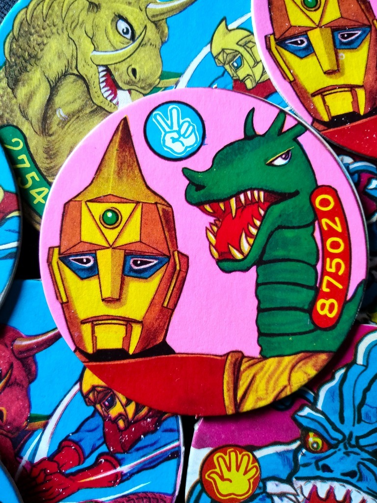 - スペクトルマン ダストマン !! 昭和40年代 当時物 丸面 未使用 面子 12枚セット!☆ 特撮 テレビヒーロー 怪獣 まんが じゃんけん めんこ
