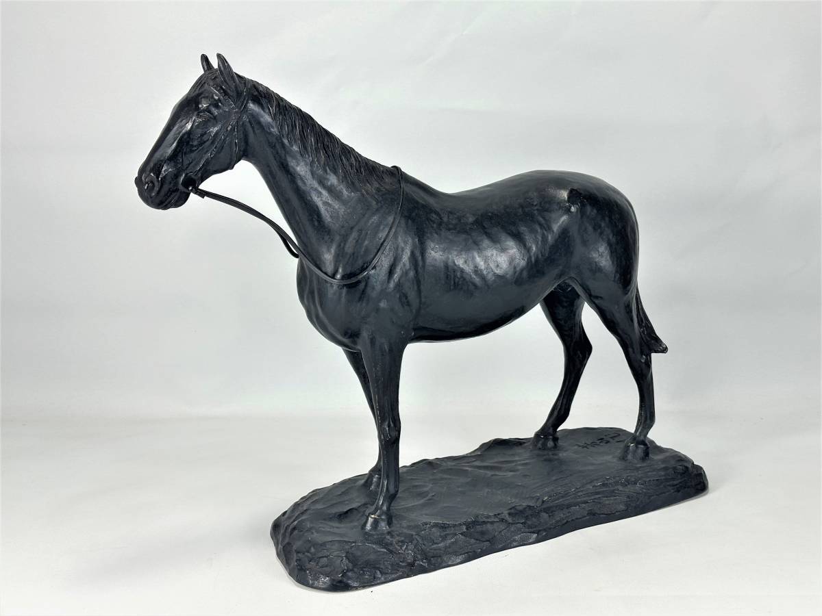- E147●金工師・芳山 作【鋳銅製静馬】銅器 銅製 銅像 ブロンズ 置物 金工 在銘 重さ:約8.4kg 現状品