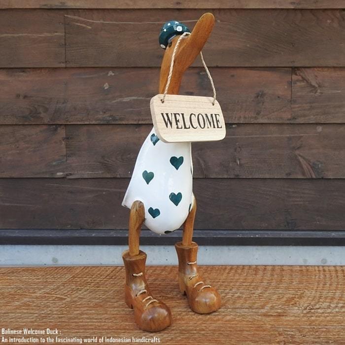 - ウェルカムボード アヒルさん ハート 緑 Mサイズ ウェルカム人形 あひる ハンドメイド 動物インテリア 動物置物 木製オブジェ