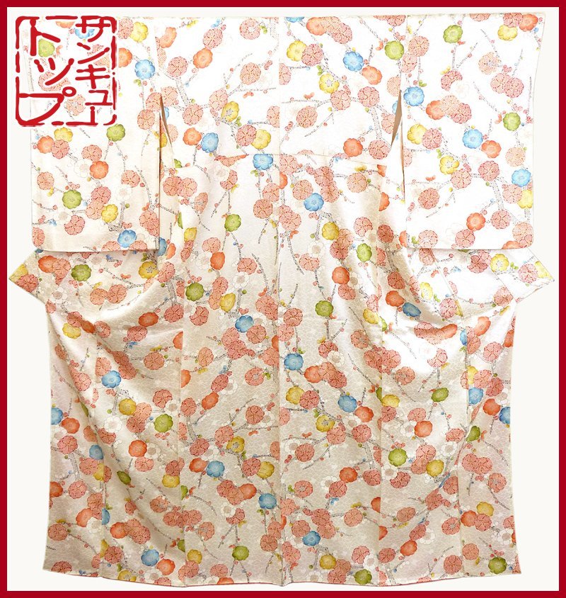 > 【店頭価格8000円の品 在庫処分 大幅値下げ】☆質:39トップ 着物館 736 正絹 小紋 梅花鹿の子文様 中古 古風で可愛らしい趣を
