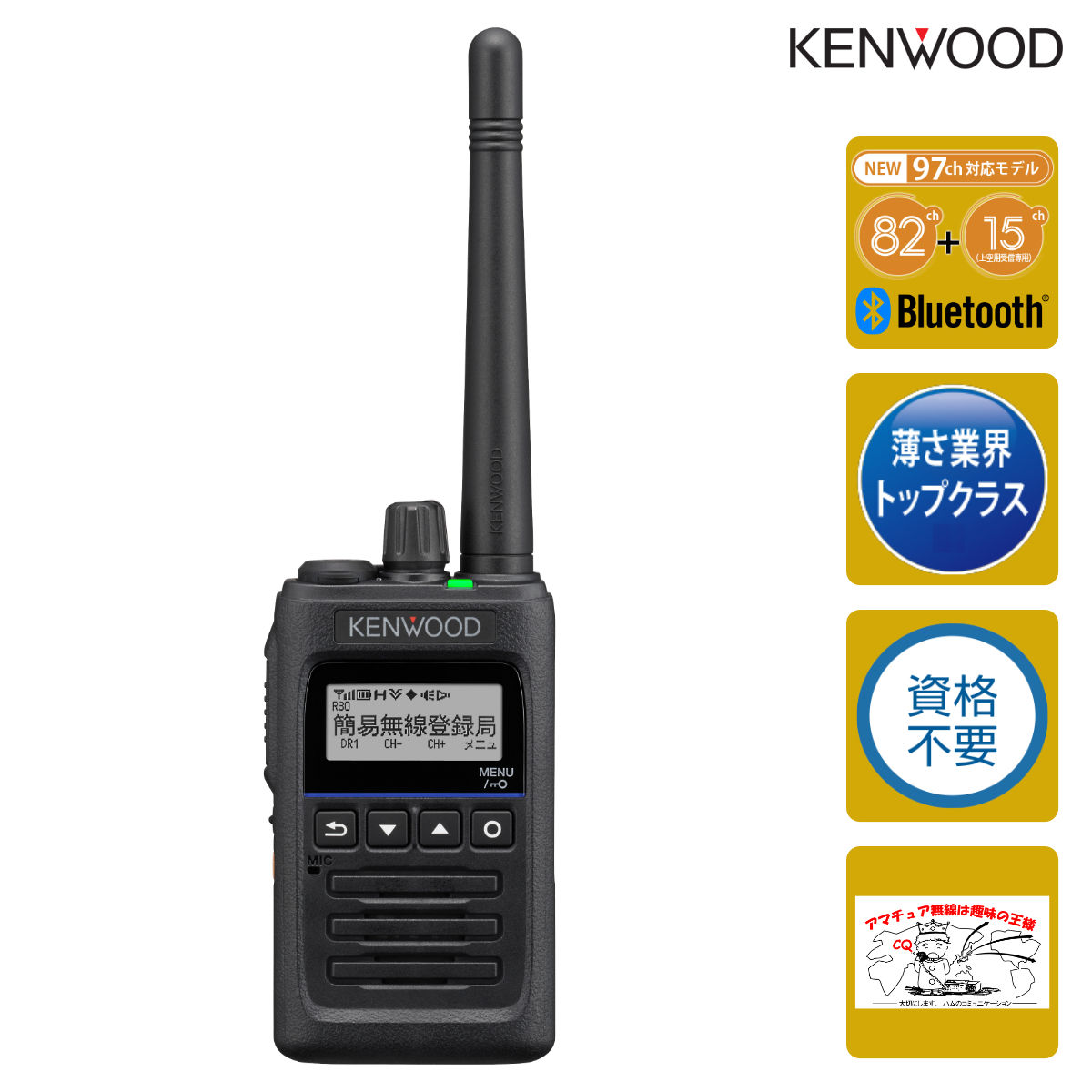また、無線機上部にアクセサリー端子を配置、ポケットに入れても邪魔になりません。