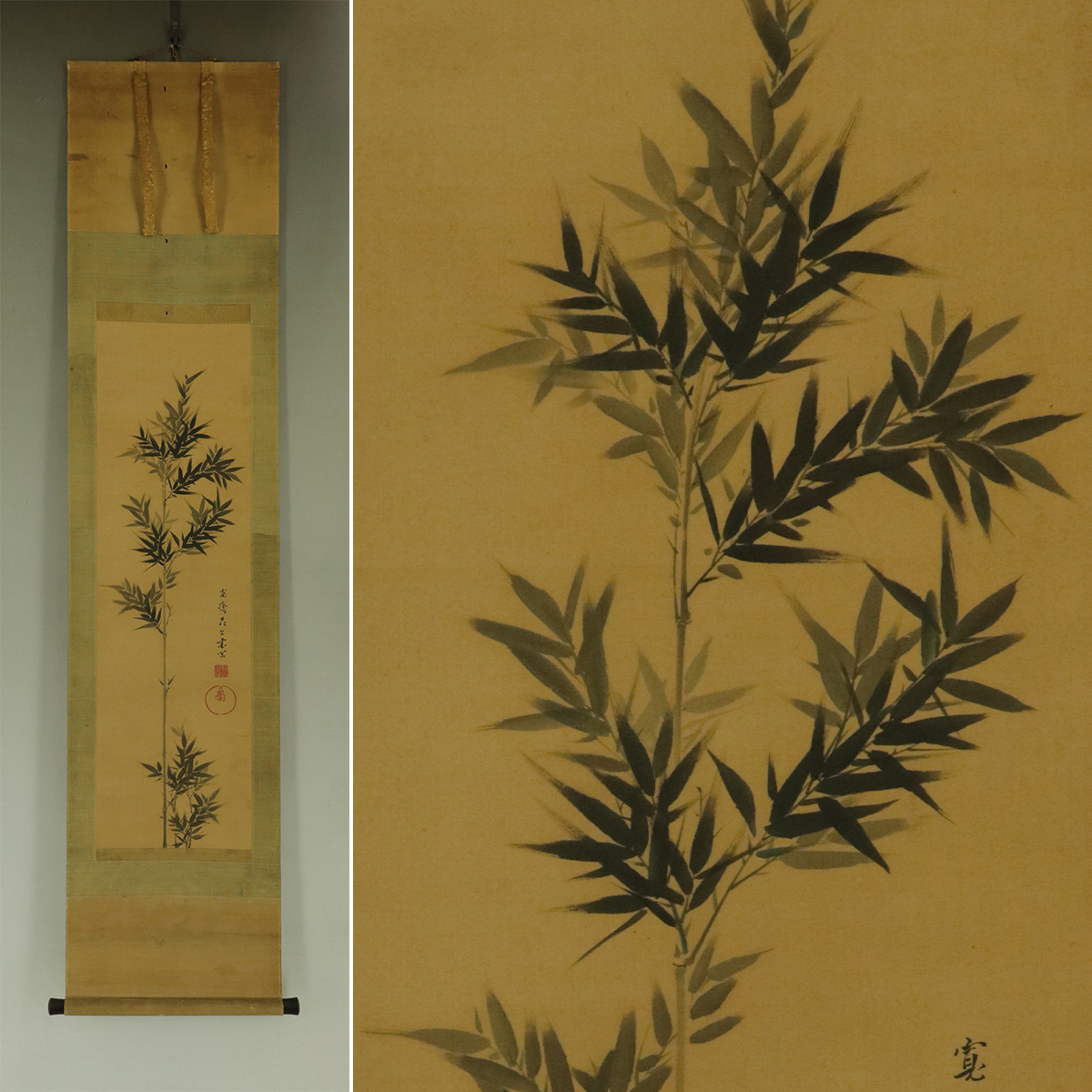 - 【模写】森寛斎【墨竹図】◆絹本◆合箱◆掛軸 t04079