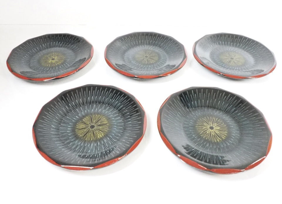 - ビンテージ 山中漆器 青毛彫小皿 5枚揃え 木製 1990年代 YMH602