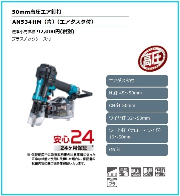 - マキタ 50mm 高圧エア釘打機 AN534HM (青) [エアダスタ付] ■安心のマキタ純正/新品/未使用■