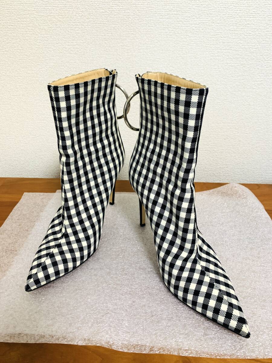 > MONSE モンス 2回程度着のみ ギンガムチェック柄 テキスタイル素材ショートブーツ イタリア製 シルバーリングジッパー付 サイズ39 送料込