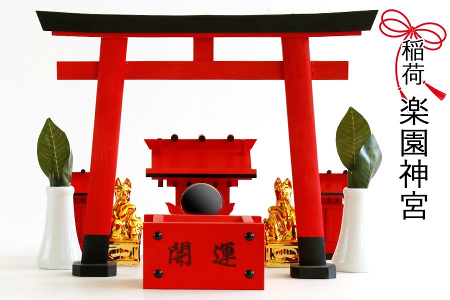 - 神棚 モダン ■ 稲荷 楽園神宮 ■ 三社 お社 稲荷宮セット 伏見稲荷 国産総桧 お守り おみくじ入れ おまもり 御守り