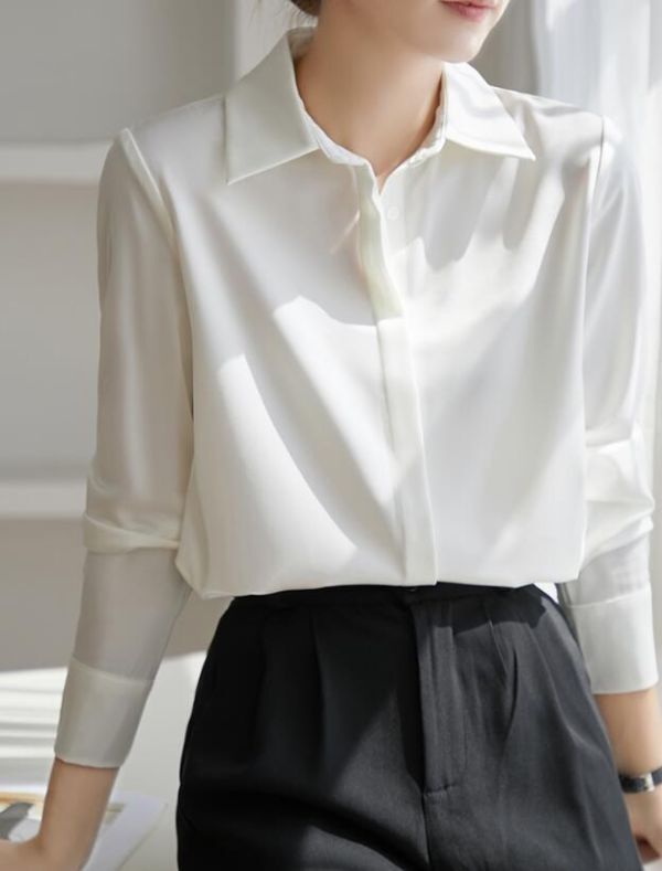 - 春新品 /シャツ ブラウス レディース 長袖 オフィス ビジネス 事務服 入学式 卒園式 無地 ワイシャツ 大きいサイズ L