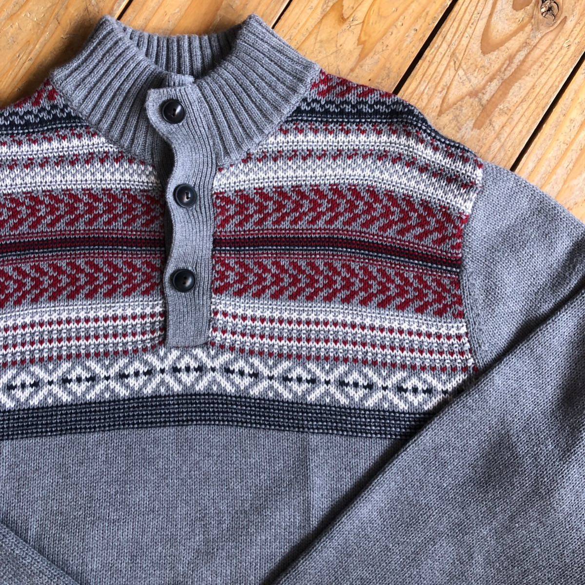 > USA古着 CHAPS チャプス ハイネックセーター メンズ Mサイズ リブ編み グレー ハーフボタン トップス コットンニット アメカジ S0800