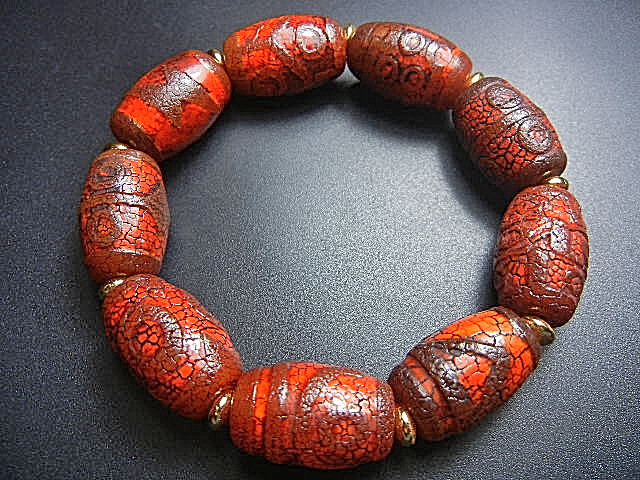 - ★西蔵天珠数珠★JFV2728 一眼から九眼 全眼天珠 数珠 14*21mm朱砂龍紋 超勧め