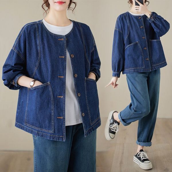 > 春新品 / アウター デニムジャケット レディース デニムシャツ デニム トップス ジャケット 大きいサイズ 長袖 羽織 大人 ゆったり / M