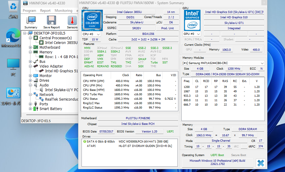 > Windows 7,10,11 選択可 15.6”ノート 2017年 富士通 LIFEBOOK A576/P ★高性能 Celeron 3855U/メモリ4GB/500GB/Sマルチ/リカバリ作成/2216
