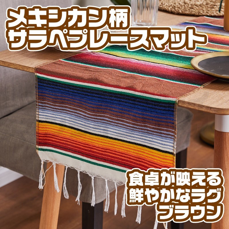 - サラペ メキシカン ラグマット ブランケット テーブルクロス ブラウン 茶色