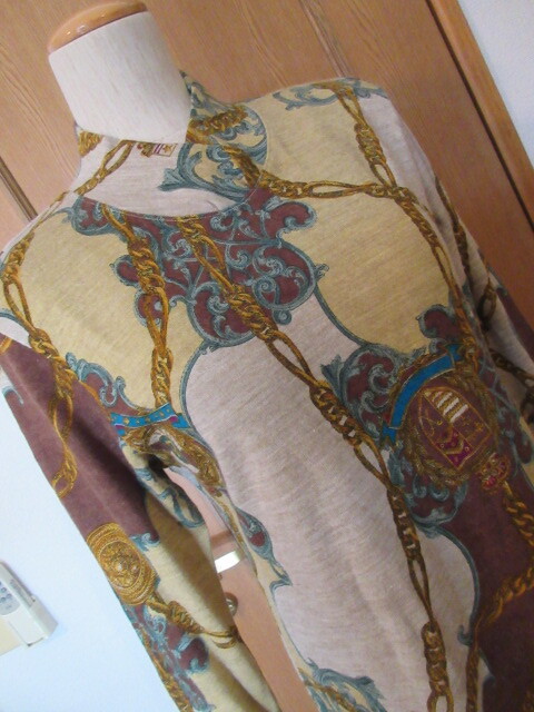 - B)■日本製■【Flaneries フランネリー】■エルメス柄の様な鎖模様/毛20%混■カシュクールネック!ドロップショルダー■素敵なセーター
