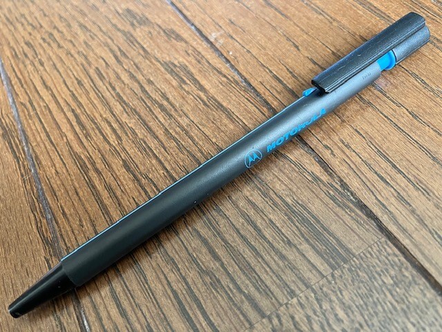 > MOTOROLA モトローラ ボールペン 全長14cm 8g ブラック×ブルー系 プラスチック製 非売品 使用品 送料無料 底値