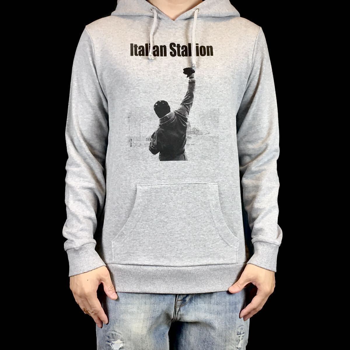 > 新品 ROCKY ロッキー フィラデルフィア美術館 拳 ガッツポーズ シルエットイタリアの種馬 スタローン映画 パーカー ユニセックス Mサイズ